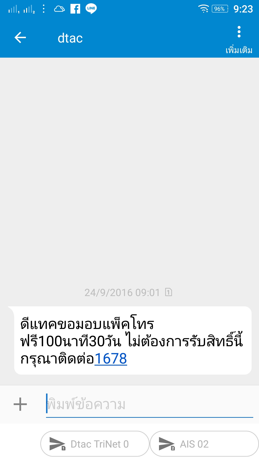 ทำเรื่องย้ายค่ายจากดีแทคเมื่อวาน วันนี้ได้รับ sms แบบที่ทุกคนได้เลย สมัครโปรให้ทั้งที่ไม่อยากได้
