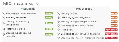 มีทีเด็ดจากลูกตั้งเตะ ฉวยโอกาสโต้กลับทันทีหากตัดบอลได้ ป้องกันแข็งแกร่งเมื่อยามขึ้นนำ