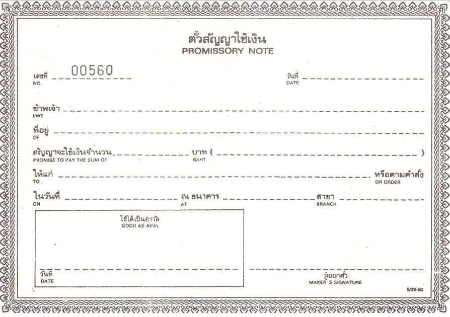 ตั๋วสัญญาใช้เงินที่ออกโดยบริษัทเงิน จะประมาณในภาพประกอบ