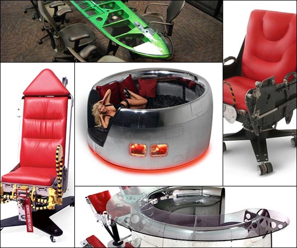 ทึ่ง ฉงน แต่ก็สวยงามแปลกตาดีค่ะ กับเฟอร์นิเจอร์ที่ทำมาจากชิ้นส่วนของเครื่องบินเก่า บริษัทแห่งหนึ่งในรัฐแคลิฟอร์เนีย ได้ทำให้ชิ้นส่วนเหลือใช้ของเครื่องบินสไตล์วินเทจกลับมามีชีวิตอีกครั้ง โดยนายเดฟ ฮอลล์ และนายโดโนแวน เฟลล์ สองเจ้าของบริษัทดังกล่าว ได้เนรมิตชิ้นส่วนต่าง ๆ ของเครื่องบินเก่า ไม่ว่าจะเป็น ส่วนปีก ประตู และฝาครอบเครื่องยนต์ ให้กลายเป็นเฟอร์นิเจอร์ชั้นดีมีสไตล์ ทั้ง เตียงนอน เก้าอี้ และโต๊ะ ซึ่งทั้งคู่ได้ผุดไอเดียนี้ขึ้นหลังจากขายชิ้นส่วนเครื่องบินเป็นงานศิลปะ
