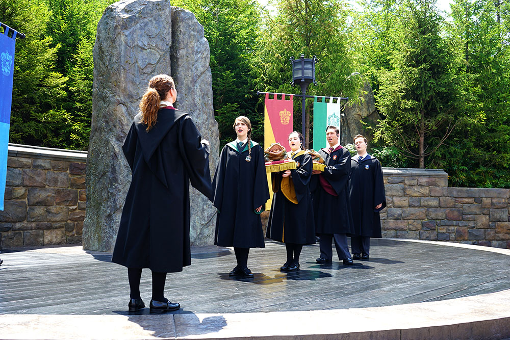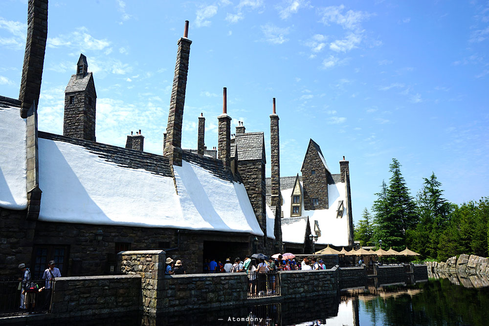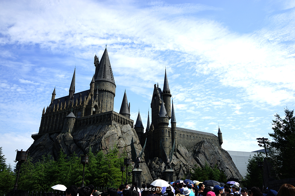 ด้านซ้ายมือคือคนมาใหม่ที่กำลังเดินเข้าไปวนด้านหลังปราสาท วนอยู่อย่างนั้นน่าจะหลายกิโลอยู่ ขดไปขดมา และเมื่อคุณคือผู้ชนะเมื่อไหร่คุณจะได้เดินออกมาเหมือน คนทางด้านขวามือของภาพ แนะนำว่าควรซื้อ Universal studio japan Express Pass เป็นอย่างยิ่งเพราะไม่ต้องรอคิวนาน แถวสั้นมากๆ