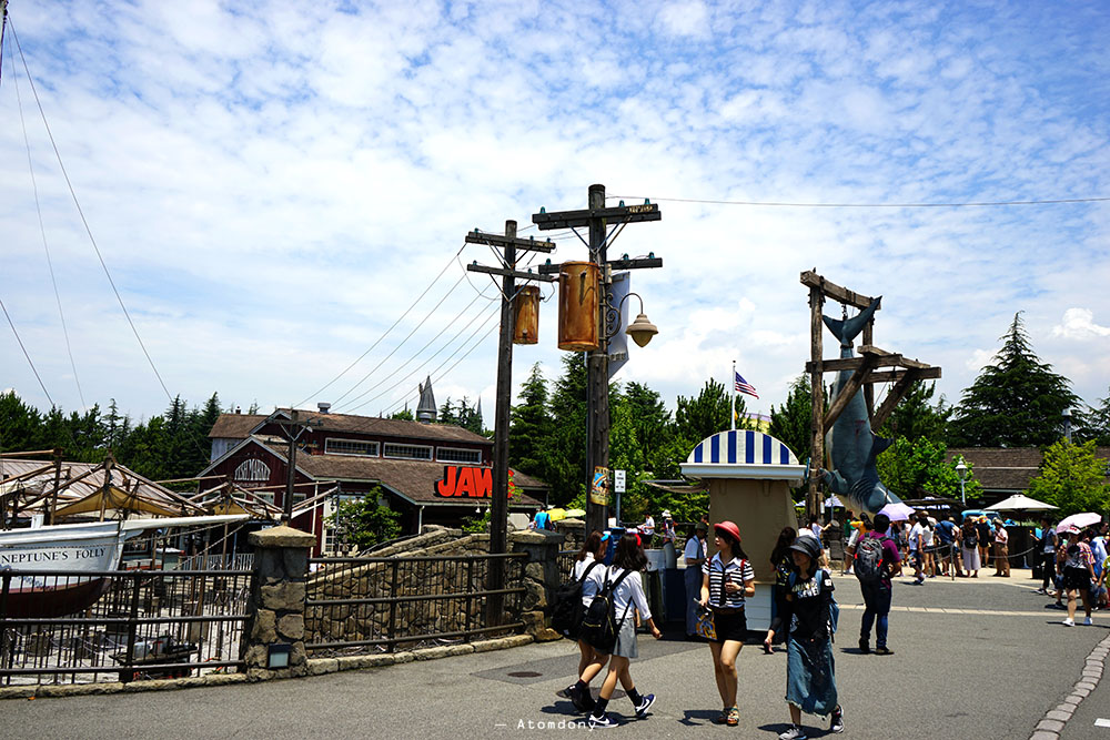 มาต่อด้วย JAWS อีก 1 เครื่องเล่นที่แนะนำ แม้จะรอนานเช่นกันเกือบชั่วโมง แถวคดไปคดมา ถือว่าคุ้มกับการรอ เพราะเจ้าหน้าที่แสดงได้ดีมาก แต่บรรยายทั้งหมดภาษาญี่ปุ่นฟังไม่ออก แต่อินได้ด้วยท่าทางการแสดงของพี่ประจำเรือ ผู้หญิงอย่างเราควรนั่งตรงกลางแถวนะคะ จะได้ไม่เปียกเวลาน้ำสาดจากด้านข้างเรือ (รูปตอนเล่นไม่ได้ถ่ายคะ กลัวกล้องเปียก)