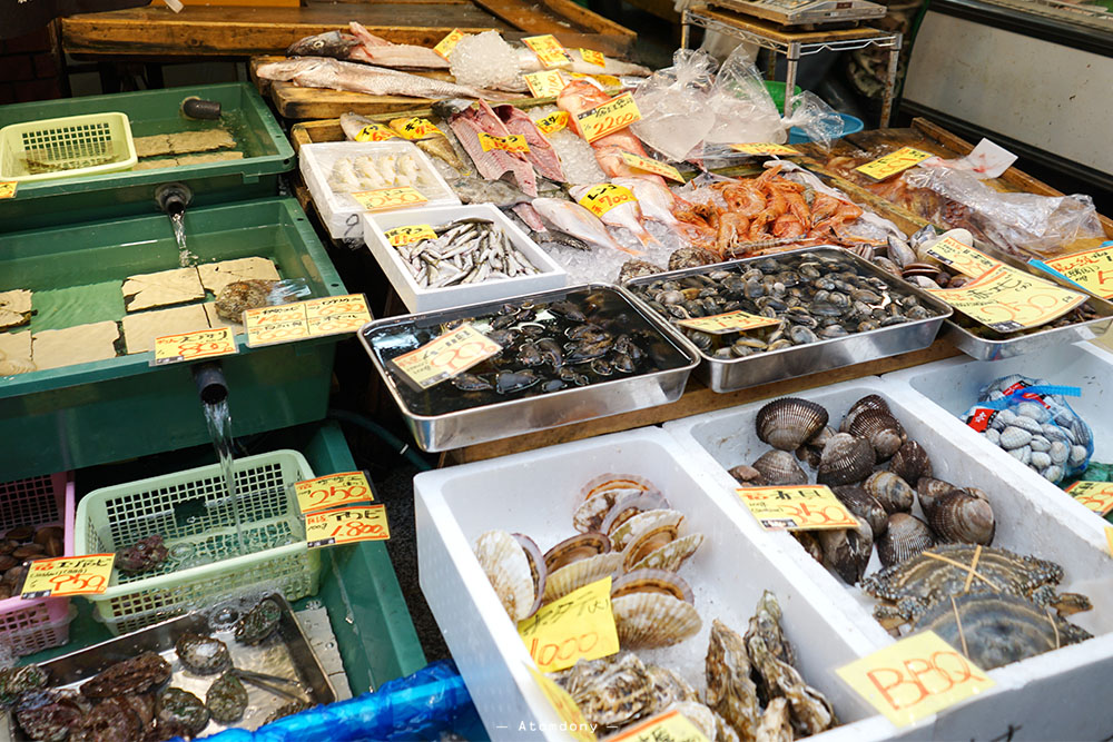 Kuromon market ลงสถานี NIPPOMBASHI exit 10 เดินตามทางมาเรื่อยๆ ทางเข้าตลาดอยู่ซ้ายมือ เลี้ยวเข้าไปได้เลย ด้านในมีแยกซ้าย-ขวา เลือกเดินได้ตามชอบคะ ร้านชูชิ ร้านข้าวหน้าปลาดิบ ร้านเนื้อย่าง (เลือกเนื้อจากหน้าร้านให้พ่อครัวปรุง) ส่วนใหญ่มีโต๊ะด้านใน นั่งทานได้คะ