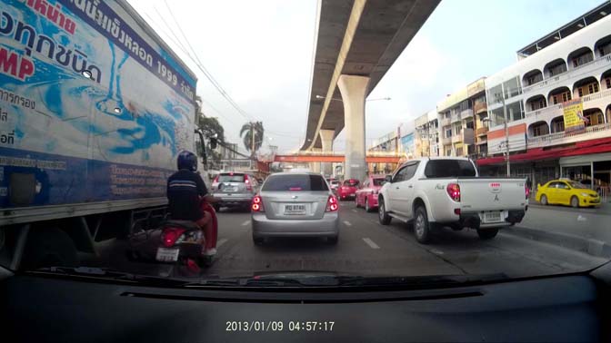 พอดีเมื่อวันเสาร์ขับรถไปดูคอนเสิร์ต 30 ปี ที่เมืองทอง ติดอยู่บิรเวณหน้าซอยเรวดี มีมอเตอร์ไซต์แทรกมาชนกระมองข้างแล้วก็จากไป...โดยที่ไม่หันมาแม้แต่จะดู ฝาครอบกระจกหลุด แค่เก็บแล้วเอาไปใส่ใหม่ก็เรียบร้อย ด้วยความที่อยากจะเอาเรื่องมอเตอร์ไซต์คันนั้นเลยเอาการ์ดในกล้องมาเสียบ โหลดไฟล์ลงโน๊ตบุค เสร็จสิ้นไม่มีปัญหา !!
