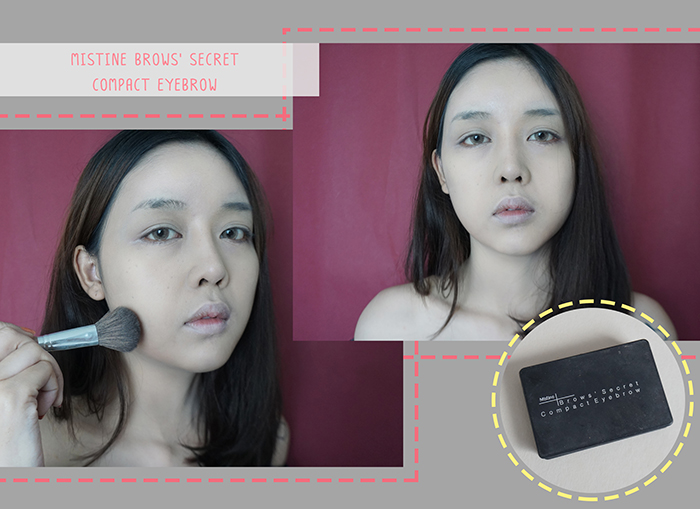 6. ใช้ตลับเขียนคิ้วของ Mistine อันเดิมที่ออกมาทุก How to 5555 ใช้แปรงปาดพร้อมกันทั้งสามหลุมเลยค่ะ แล้วทาลงที่กรอบหน้า บริเวณวีไลน์ ปลายคาง และ ไรผมค่ะ