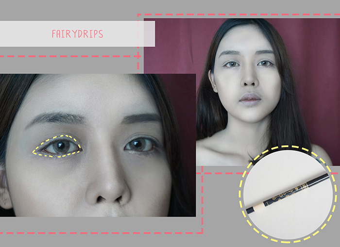 10. มาถึงขั้นตอนของการเขียนตาของเรานะคะ วันนี้ง่ายมากๆ ใช้ที่เชียนขอบตาสีขาวชิมเมอร์วาดที่ขอบตาบนและล่างตามรูปเลยค่ะ เกลี่ยๆ ให้ดูฟุ้งนิดหน่อยนะคะ แท่งที่อีฟใช้จะมีที่เกลี่ยให้ในตัวด้วย ถ้าเพื่อนๆไม่มีก็ใช้แปรงเล็กๆ แทนได้ค่ะ