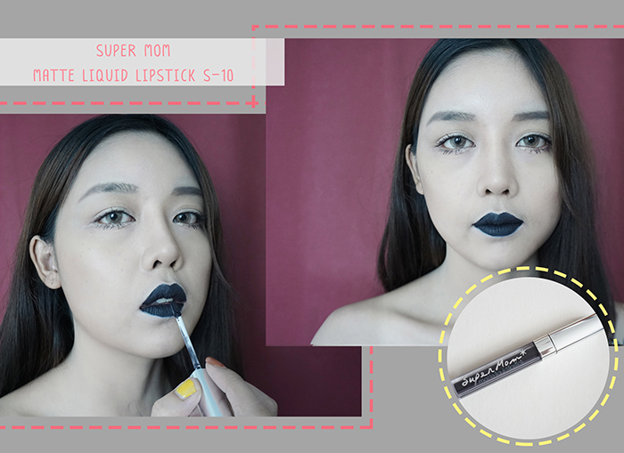 13. ขั้นตอนสุดท้ายแล้วค่าทุกคนนน นางเอกของเราในวันนี้ ลิปสติกสีดำค่ะ อีฟใช้ของ Supermom เบอร์ S-10 นะคะ ตอนนี้กำลังลดราคาอยู่ด้วย ไปสอยมาหลายสีเลยค่ะ ทาให้ทั่วปาก และเก็บขอบปากด้วยคอนซีลเลอร์ค่ะ ลิปสติกที่เลือกใช้เป็นเนื้อแมทนะคะ ก่อนจะทาต้องบำรุงปากกันเยอะหน่อยเนาะ อย่าลืมบำรุงด้วยลิปบาล์มก่อนหลายๆ วันเพื่อปากที่ไม่แห้งแตก ตกร่องนะคะ