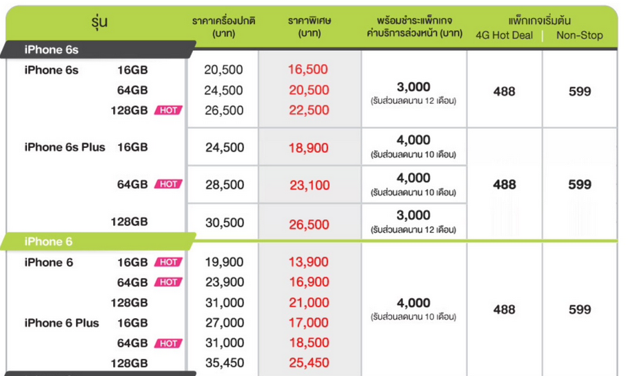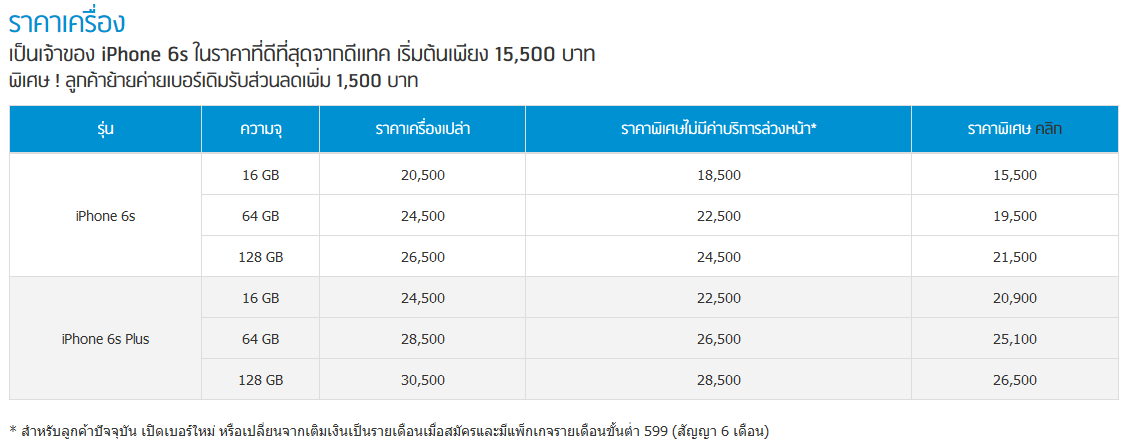 สีตามค่ายเลย AIS = เขียว DTAC = ฟ้า TRUE = แดง โปร 599-699 โปร 899 โปร 1099 ***รวมค่าเครื่อง + ค่าโปร 12 เดือน เป็นเพียงราคาคร่าวๆ ที่ใช้งานไม่เกินโปรโมชั่นครับ * ถ้าย้ายเข้า TRUE ได้ลดอีก 1