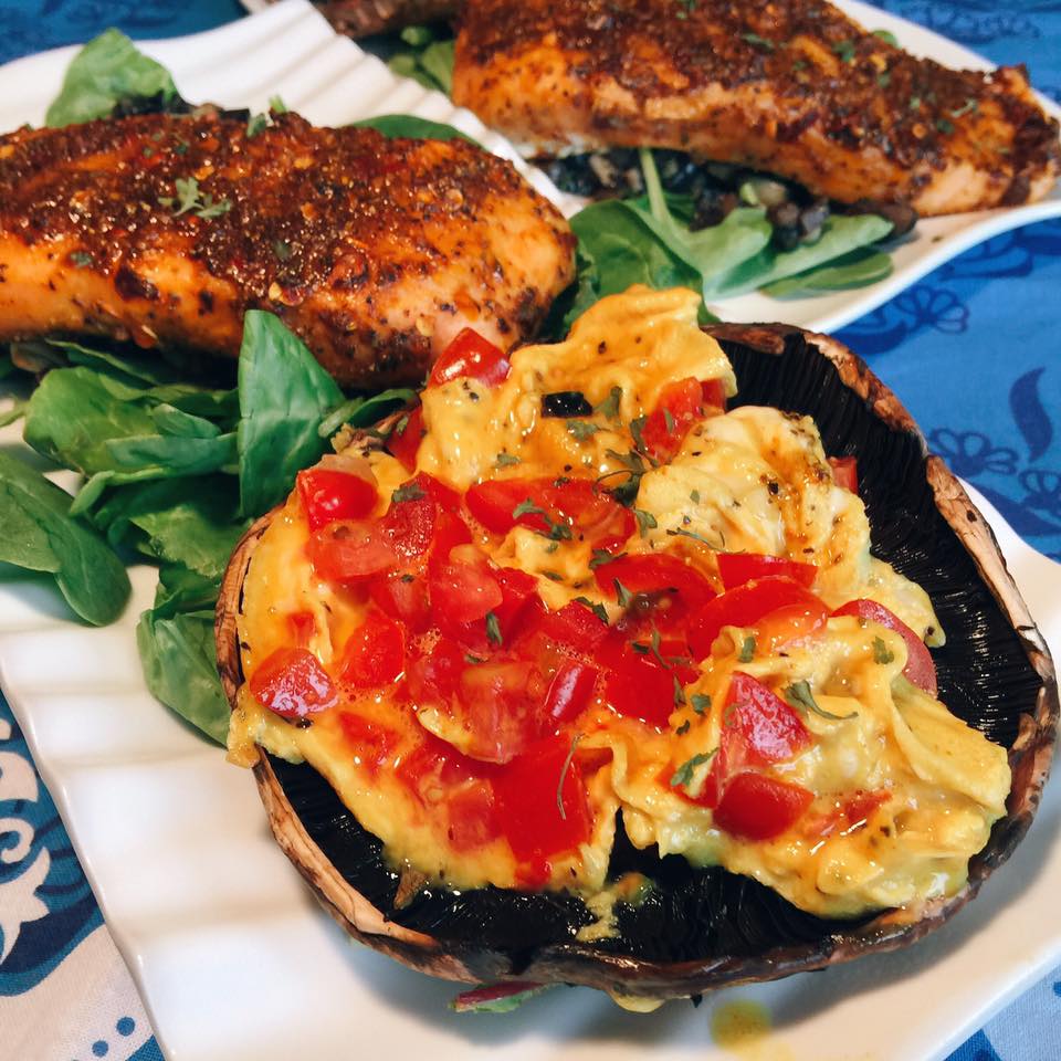 Baked Salmon ➕ Grill Portobello & Tomato Omelette