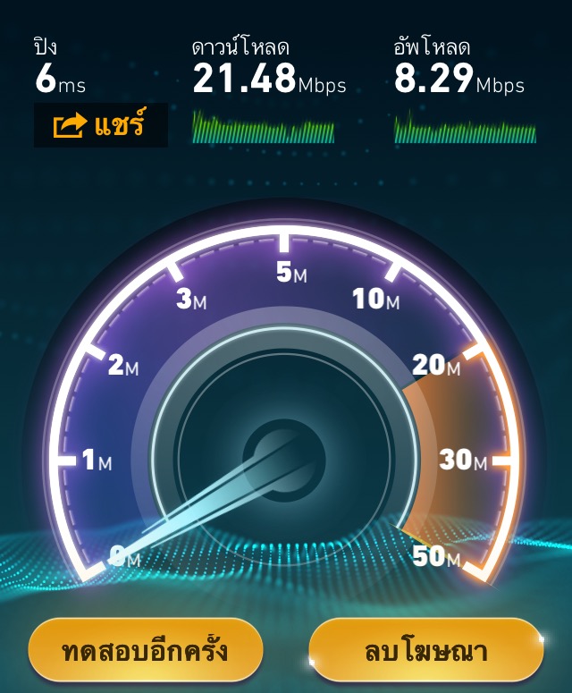 จากนั้นทำการเทสสปีด มาเร็วเต็มแพคเกจที่ได้สมัครไว้ ผมคิดว่าหลังจากที่ AIS Fibre ได้รับคำแนะนำจากหลายๆกระทู้ในนี้ คงนำไปปรับปรุงกระบวนการภายในแล้ว<br> ขอให้ handle case อื่นแบบนี้ต่อไปครับ
