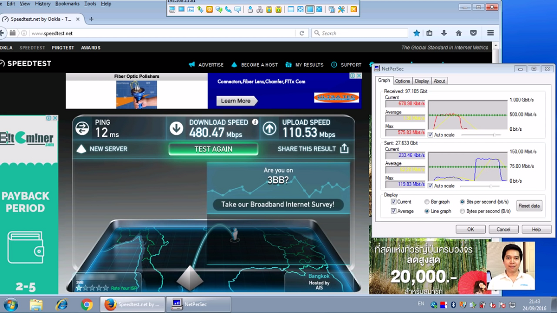 ทดสอบความเร็ว Internet 3BB FTTx 500M/50M (Speedtest)