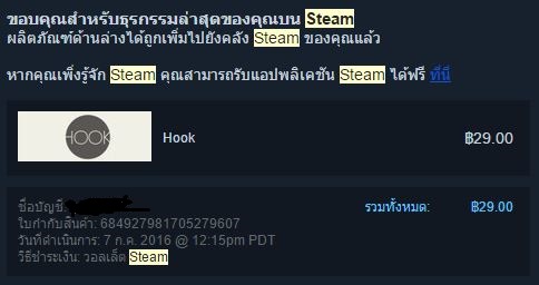 ซื้อเกมส์ใน steam แต่ไม่เข้าคลังใน steam เงินใน true wallet โดนหัก