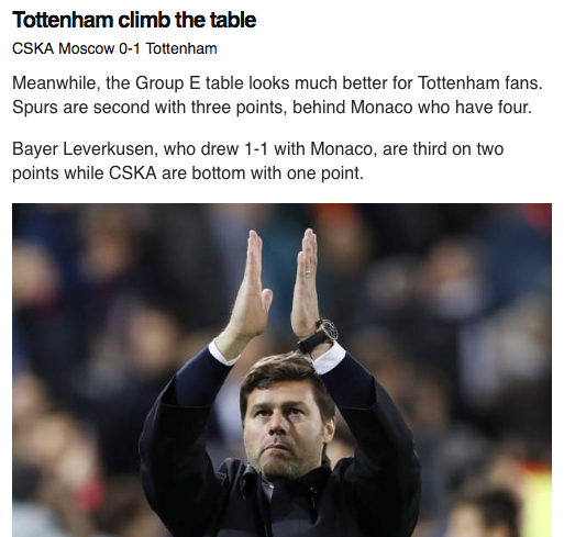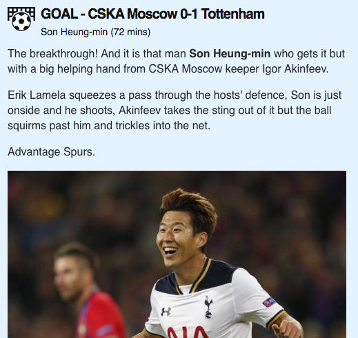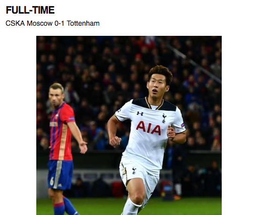 CSKA Moscow 0-1 Tottenham in Champions League - Group E
