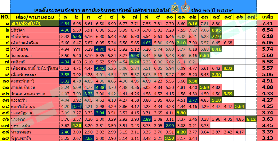 ---+++ UPDATE !!! รวบรวมเรตติ้งละครหลังข่าว ช่อง 33HD ตั้งแต่ต้นปี2559 ทั้งหมด19 เรื่อง (ข้อมูล ณ วันที่ 28/9/59) ---+++