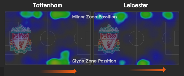 ดังภาพตัวอย่างที่ยกมาแสดงให้เห็นถึงตำแหน่งการเคลื่อนที่ของสองแบ๊ค ซ้ายขวาของเรา จะเห็นได้ว่า ในยามที่เจอกับทีมที่เปิดแลก ทั้งไคลน์และมิลเนอรืนั้นดูจากการเคลื่อนที่แล้วทำหน้าที่ในเกมส์รุกมากกว่ารับ ซึ่งมันก็ดีถ้าลิเวอร์พูลสามารถพับสนามบุกจนอีกฝ่ายโงหัวไม่ขึ้น แต่ถึงกระนั้นลูกโต้กลับฉับผลันจากอีกฝ่ายก็ยังอันตรายเสมอ ซึ่งผมคาดการณ์ว่า สวอนซีจะใช้เป็นไม้เด็ดในการทิ้งบอลยาวไปด้านข้างซึ่งเปิดโล่งเมื่อยามแบ๊คของหงส์แดงขึ้นเติม ใช้จุดนี้เปิดเกมส์เข้าแลกกับทีมที่คลั่งเกมส์บุกอย่างลิเวอร์พูลแน่ๆ ซึ่งในภาพตัวอย่างผมเอานัดที่เจอกับ สเปอร์และเลสเตอร์มาแสดง ที่ไม่เอาทีมอย่างอาเซนอลหรือเซลซีที่เจอกับเราไปแล้วก็เพราะ ระดับของทีมเหนือกว่าสวอนซีเกินไป