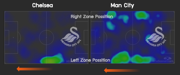 เพราะเมื่อดูตำแหน่งการเคลื่อนที่ในแนวรุกด้านข้างทั้งซ้ายและขวาของสวอนซี ในนัดที่พบกับเซลซีและแมนซิตี้ที่ถือว่าระดับใกล้เคียงกับทีมของเราแล้ว ก็แทบอยากจะเอาเท้าขึ้นไปก่ายหน้าผากอีกรอบ เพราะคิดภาพออกว่าหากโดนสวนกลับในขณะที่แบ๊คทั้งสองข้างอย่างไคลน์และมิลเนอร์ลอยขึ้นไปสูงแล้ว ขึ้นไปช่วยเติมเกมส์รุกแล้วกลับลงมาตั้งรับไม่ทัน มันจะเกิดอะไรขึ้น ท่านที่เข้ามาอ่านก็คงจะทราบใช่ไหมครับ
