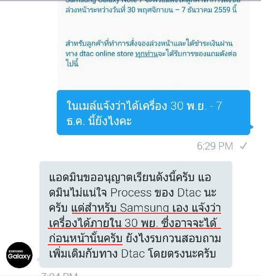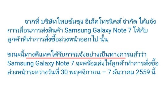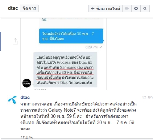 DTAC~ ประกาศชัด : ลูกค้าดีแทคจะได้note7 ที่จองและยืนยันรับเครื่อง เลื่อนไปอีกเป็น 30/11-7/12/59