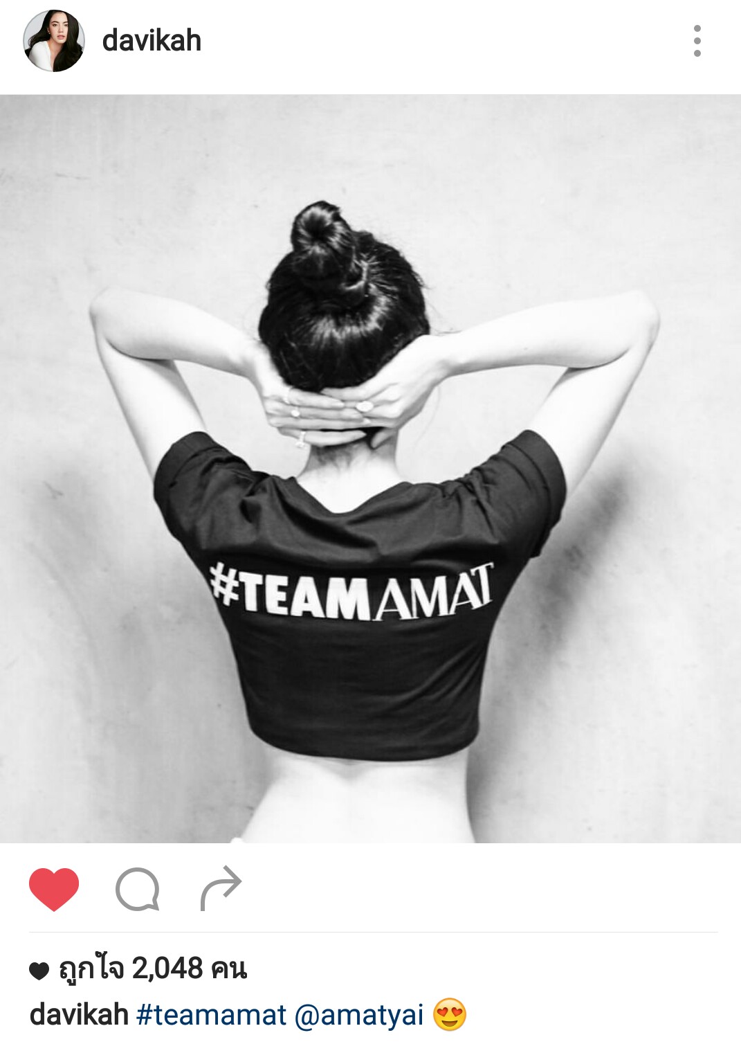 ใหม่ ดาวิกา. โพสภาพใส่เสื้อ #Teamamat ลุ้นว่าเกี่ยวข้องกับ the face thailand. อย่างไร?????