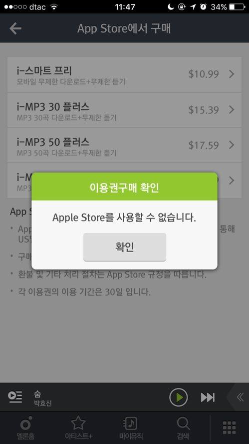 [Melon Music] ย้ายไปใช้ App Store เกาหลี ซื้อแอพได้ แต่จ่าย in app purchase ไม่ได้