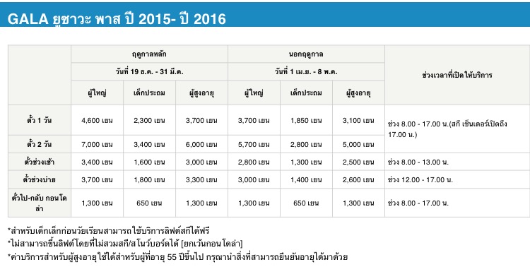 - ค่าตั๋วสกีครึ่งเช้า 3400 เยน (ไม่แน่ใจว่าพาสนี้รวมอะไรบ้าง)