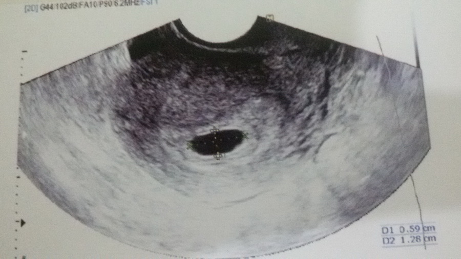 ผล U/S ทางช่องคลอด ครั้งที่ 1 วันที่ 28 ส.ค. เห็นแต่ถุงการตั้งครรภ์