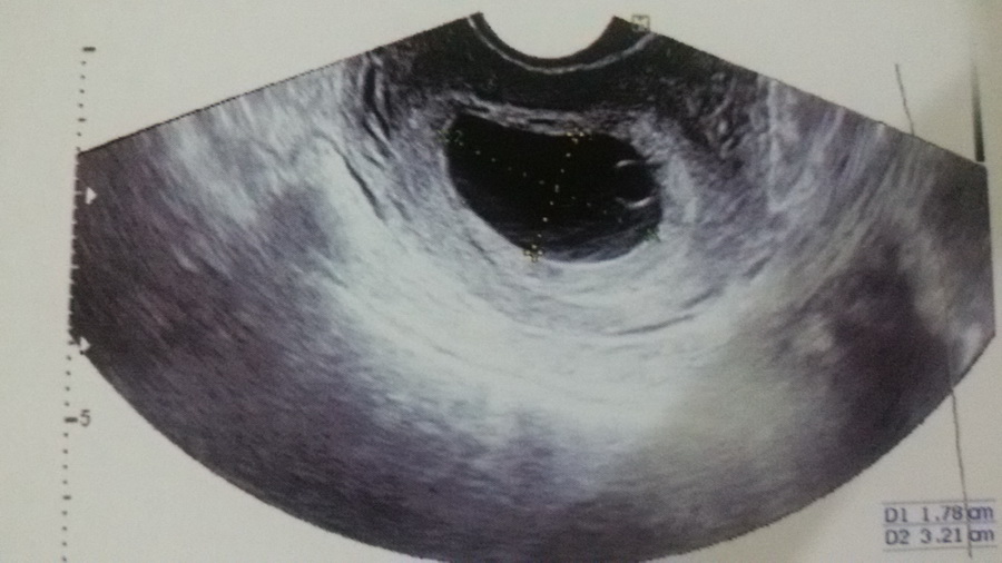 ผล U/S ทางช่องคลอด ครั้งที่ 3 วันที่ 21 ก.ย. เห็นถุงไข่แดง ทำให้เริ่มมีความหวังขึ้นมา