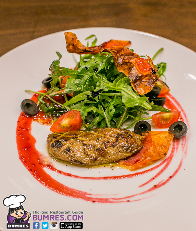ที่สำคัญของเมนูนี้ก็คือฟัวกราส์ที่อาจจะไม่ได้เนื้อแน่นมากนัก แต่ความหอมมันของฟัวกราส์ที่ได้ในจานนี้ กับความเป็นธรรมชาติของร็อคเก็ตป่า กับซอสเบอรี่เปรี้ยว ๆ มะกอกเค็ม ๆ กินด้วยกันก็เข้ากันได้ดีมาก ๆ แต่จานนี้ผมคิดว่าราคาสูงเกินไปครับน่าจะสักราว ๆ 250 น่าจะกำลังดี