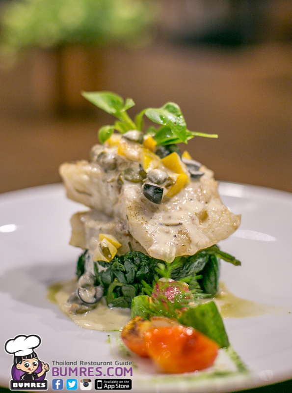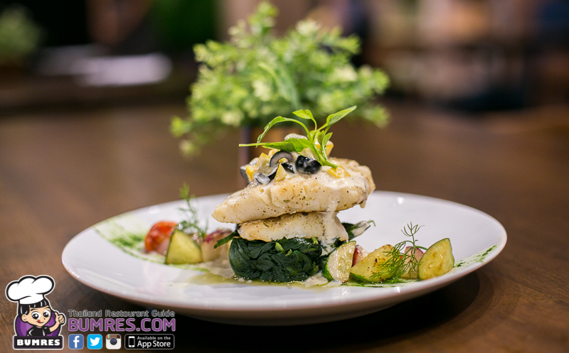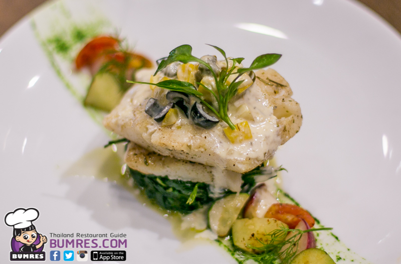 น้ำซอสที่ราดมารสชาติดีมีความหอมของผิวเลมอนด้วย ทำให้ช่วยเพิ่มความเบาและสดชื่นกับเมนูนี้ได้อย่างดี ส่วนผักที่ประกอบมาด้วย ผมโขมที่อยู่ด้านล่างนุ่มอร่อยดี แต่ส่วนผักข้าง ๆ จานถ้าปรุงให้ได้รสชาติและสุกกว่านี้จะทำให้สามารถกินคู่กับเนื้อปลาได้อย่างอร่อยเลย แต่นี่มันยังเป็นผักที่กรอบ ๆ อยู่เวลากินกับเนื้อปลาที่นุ่มกว่าผักมันเลยไปกลบความรู้สึกของปลามากเกินไป