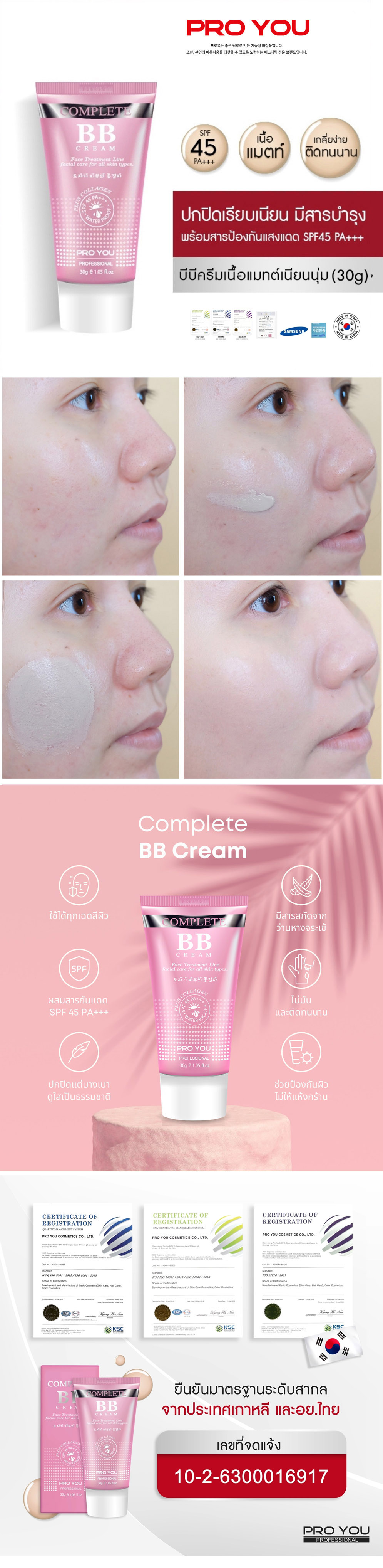 บีบี ครีม นำเข้าจากเกาหลี Complete BB Cream SPF 45 PA+++ , PROYOU ตราซัมซุงรับรองคุณภาพ
