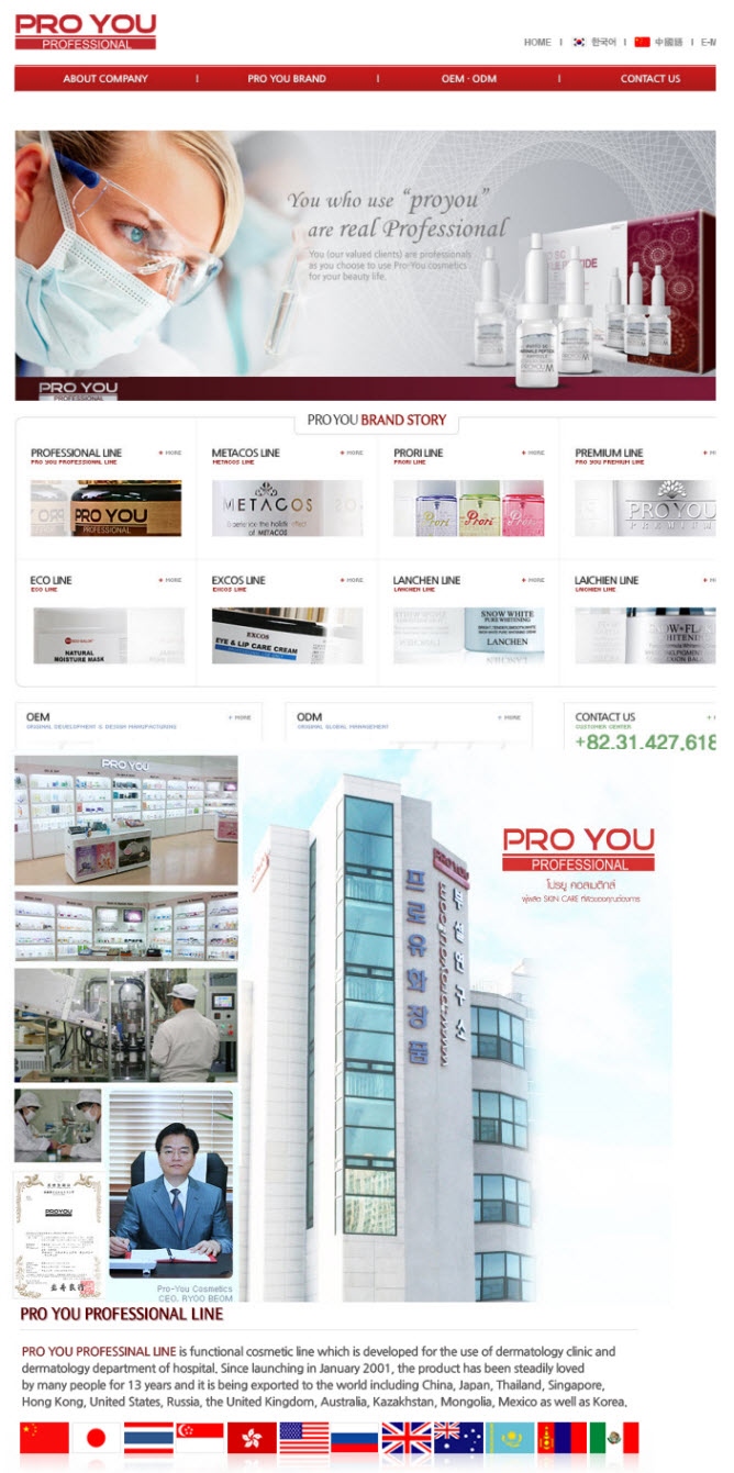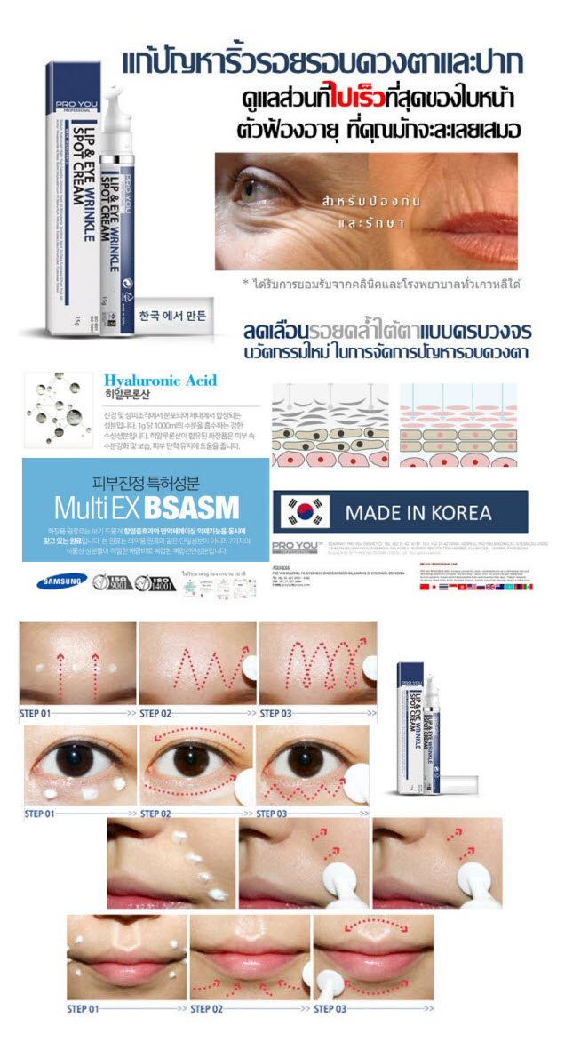 Dermatologist-grade skin care products PROYOU PROFESSIONAL , S.KOREA PROYOU เป็นเวชสำอางเกาหลี ส่งออกทั่วโลก โดยบริษัทได้ผลิต เวชสำอางครบวงจร ให้คลินิคและโรงพยาบาลทั่วเกาหลีมานาน มีการจดสิทธิบัตรอย่างต่อเนื่อง ใช้ในสถานผิวหนังกว่า 5,000 แห่งทั่วเกาหลีใต้