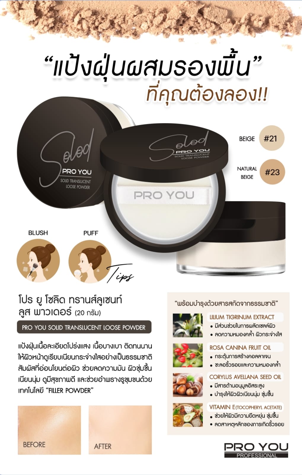 แป้งฝุ่นผสมรองพื้น Pro You Solid Translucent Loose Powder เนื้อเนียนบางเบา ปกปิดระดับปานกลาง Made in Korea