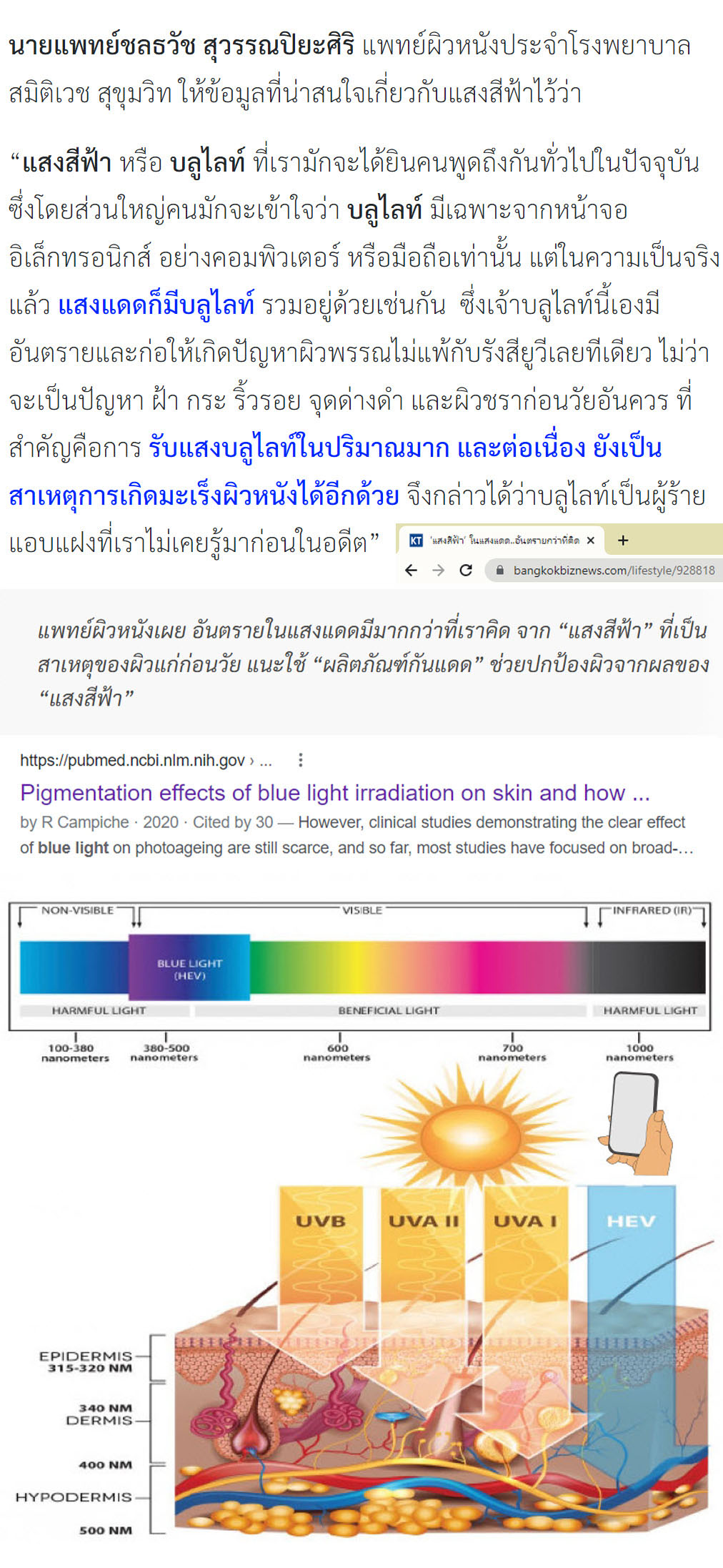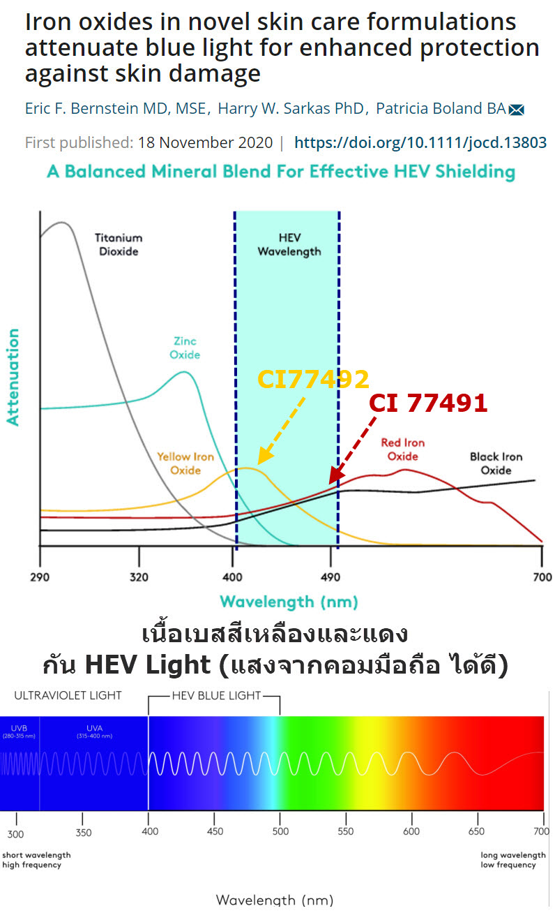 และที่สำคัญ เนื้อสีของบีบีนี่เอง ที่ช่วยป้องกันแสงฟ้า (Blue light) จากจอ LED ต่างๆ ที่มีงานวิจัยชัดเจนว่าทำให้ผิวคนเอเชีย (ผิวเหลือง) คล้ำ เสีย หรือมีฝ้าเข้มขึ้นได้