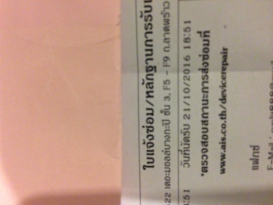 1/10/59 ผมได้ไปซื้อไอโฟนที่สาขาเอไอเอส2 ถนนพหลโยธิน มีสัญญา1ปี รายเดือน800กว่าบาท ตอนลองก็ปกติดีครับ แต่พอนำกลับมาบ้านตอนเย็น หน้าจอสไลด์ไม่ได้ เครื่องค้าง โทรเข้าได้แต่รับไม่ได้
