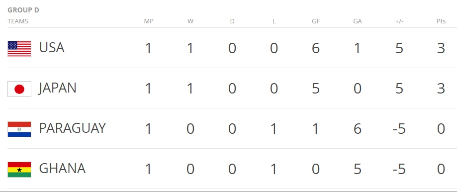 โฟกัส ที่กรุ๊ป D ที่มีญี่ปุ่น และ อเมริกา