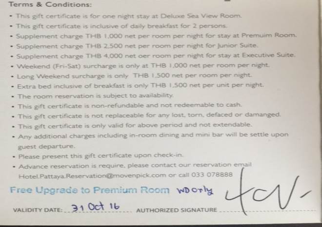 ขายบัตรที่พัก โรงแรม Movenpick Pattaya จำนวน 2 ใบ