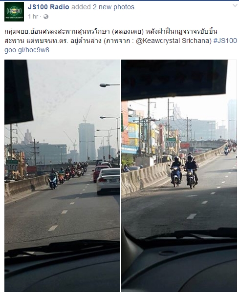 กลุ่มจยย.ย้อนศรลงสะพานสุนทรโกษา (คลองเตย) หลังฝ่าฝืนกฏจราจรขับขึ้นสะพาน