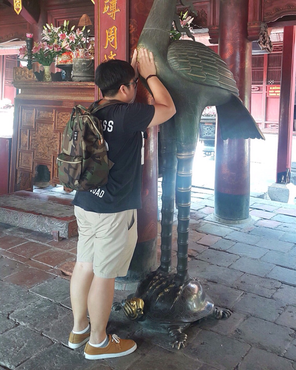 เดินต่อไปข้างในเพื่อกราบไหว้ขอพรเทพอันศักดิ์สิทธิ์ รวมไปถึงรูปปั้นนกกระเรียนเหยียบหลังเต่าที่ชาวเวียดนามมีความเชื่อว่า ช่วยเสริมสิริมงคล