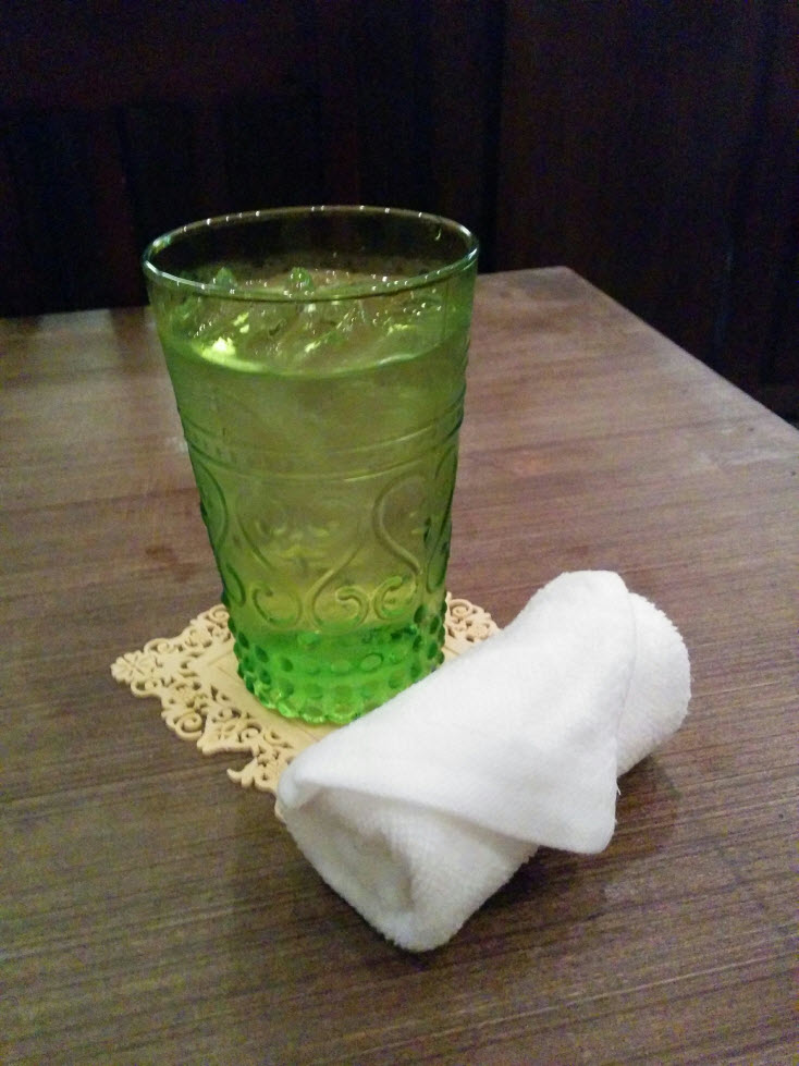 พอนั่งโต๊ะปุ๊บก็มีน้ำชาและผ้าเย็นมาต้อนรับทันทีครับ
