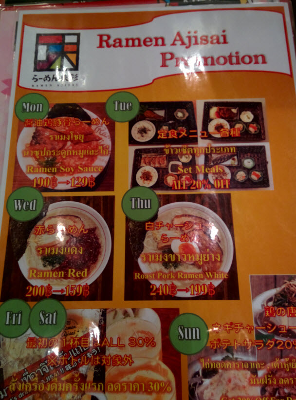 วันนี้เป็นวันจันทร์พอดิบพอดีเลยครับ ทางร้านมีโปรโมชั่นทงคตสึราเม็งที่ผมชอบพอดี (จริงๆแล้วผมเช็คในเว็บครับว่าทงคตสึมีโปรโมชั่นวันไหน) ว่าแล้วก็สั่งเลยครับ เท่าที่ผมจดไว้คือลดราคาจาก 190 บาทเหลือ 129 บาทเท่านั้นเอง