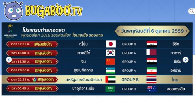 โปรแกรมถ่ายทอดทาง Bugaboo TV วันนี้