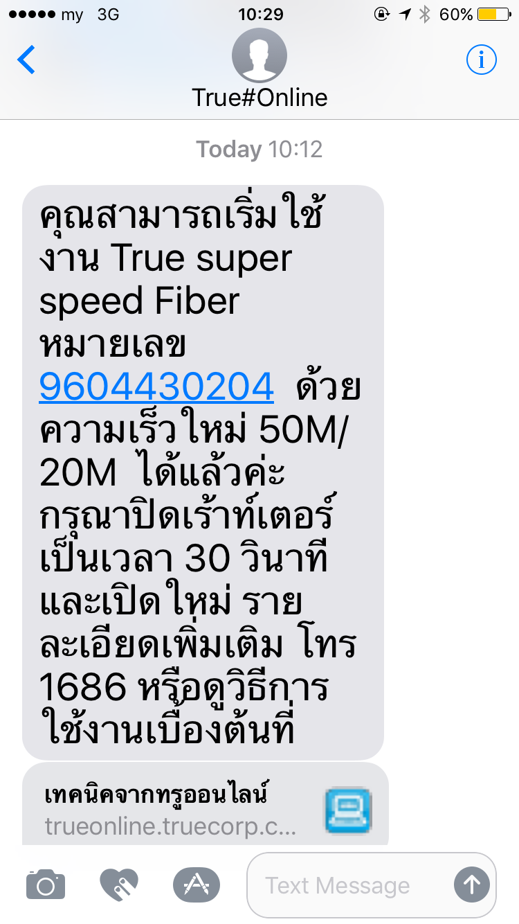 Internet บ้าน True อำเภอบ้านหมอ สระบุรี มีปัญหา ยังไม่ได้รับการแก้ไข