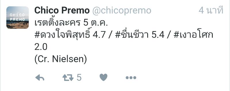 เรตติ้งละคร 5 ต.ค. 59 ... ดวงใจพิสุทธิ์-ชื่นชีวา-เงาอโศก