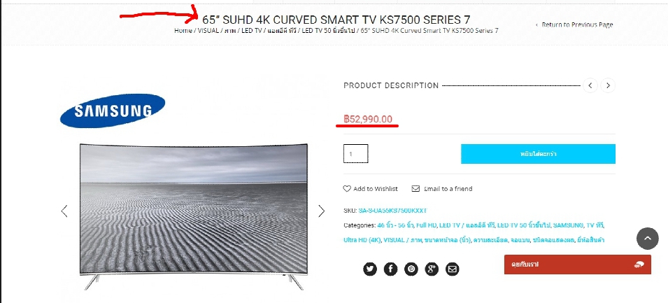 ในวันที่ 28 กันยายน 2559 ผมเลยได้ทำการซื้อทีวี ยี่ห้อ Samsung ขนาด 65 นิ้ว รุ่น KS7500 ตามรูปที่แนบ ผ่านเวปไซท์ของร้าน
