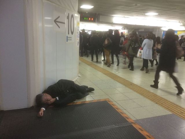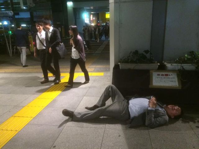 หากใครไปญี่ปุ่น (โดยเฉพาะในโตเกียว) แล้วได้เห็นนักธุรกิจใส่สูทนอนไม่ได้สติอยู่ตามสถานีรถไฟหรือข้างถนน