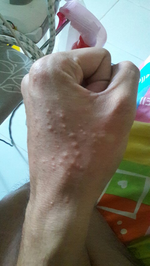 มันขึ้นเยอะมากและคันมากๆครับ ขึ้นทั้งสองข้างเลย ตุ่มแบบนี้ผมเคยเป็นมาก่อนแล้วแต่มันไม่ขึ้นเยอะเท่านี้หรืออาจจะเพราะผมเกาก็ได้ อาการคันจะเกิดหลังจากอาบน้ำ คือจะไม่เกาก็ไม่ได้เพราะมันคันมากๆ ผมคิดว่าผมอาจจะแพ้อะไรซักอย่างหรือเป็นโรคผิวหนังรึป่าวเพราะบางทีมันไม่ใช่คันแค่มือ มันคันยุบยิบทั้งตัวเลย ใครเคยมีอาการแบบนี้แล้วรักษาหายบ้างครับ ช่วยแนะนำหน่อยครับ