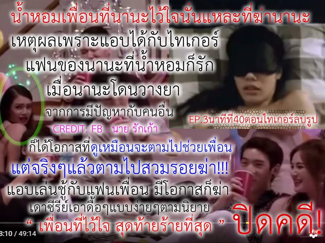หรือว่าน้ำหอมแอบชอบไทเกอร์ เพราะตอนที่เล่นเกมส์ นานะพูดว่า "ไม่เคยชอบแฟนเพื่อน" น้ำหอมก็กินเหล้าเข้าไปเหมือนกัน นางอาจมีเอี่ยวในการฆาตรกรรมนานะก็เป็นได้ ตอนนี้งงไปหมดแล้วววววว