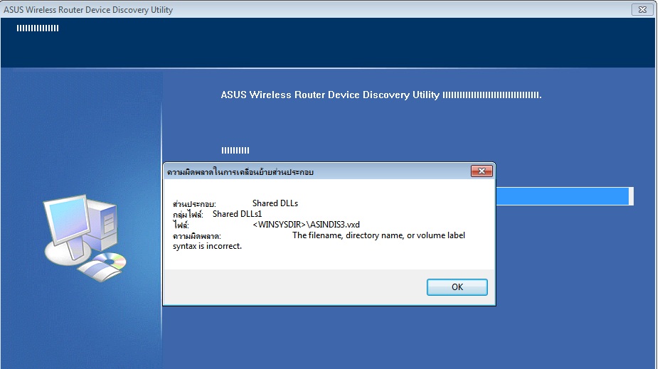 ลงโปรแกรมสำหรับอัพ firmware router ของ asus ไม่ได้ครับ มันขึ้นข้อความ(ในรูป) ต้องแก้ไขยังไงครับ?
