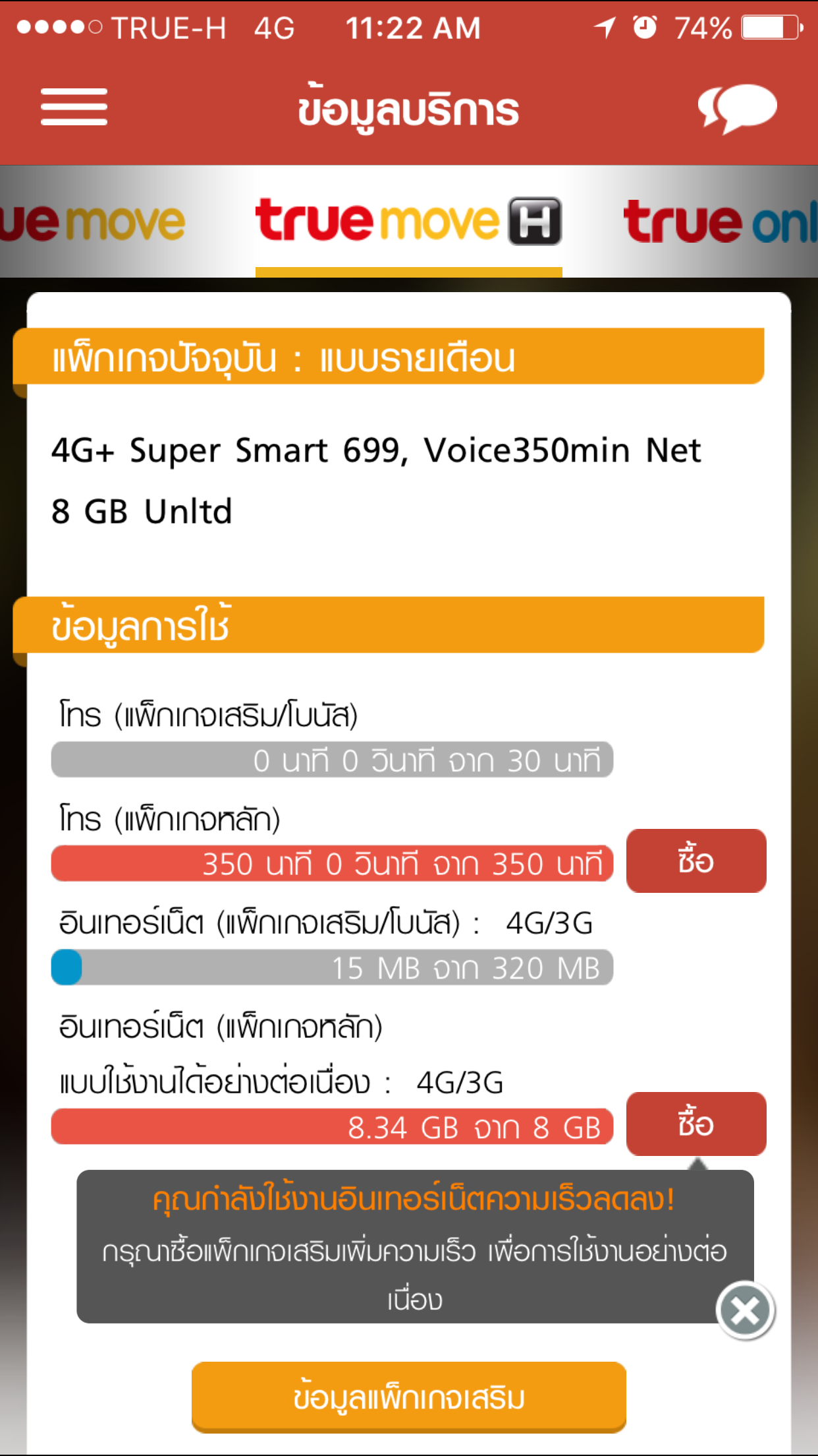 Truemove H 4G extra voice 899 ไปๆมาๆ รอบบิลนี้เหลือ 3GB เนตที่ได้ฟรีก็หายไป