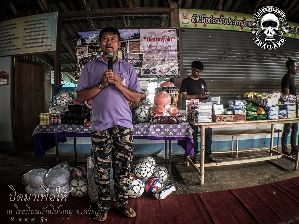 "ผู้อำนวยการโรงเรียนบ้านโป่งเกตุ" (นายเล็ก ชนะชัย)ให้การต้อนรับ อย่างดี แล้วกล่าวคำขอบคุณผู้มาบริจาค