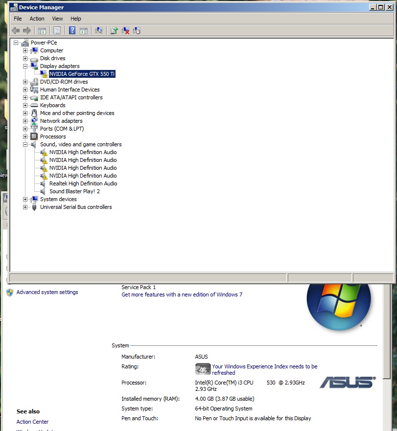 ไดฟ์เวอร์การ์ดจอเป็นเครื่องหมายตกใจ(DeviceManager)